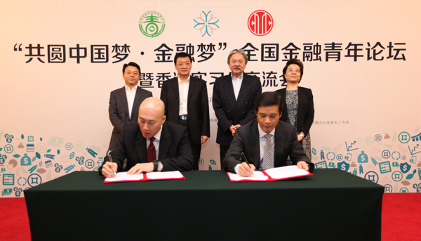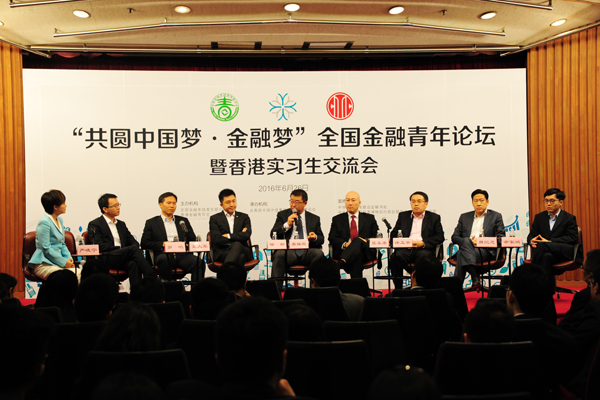 6月26日,,,,,,,由天下金融青联、香港金融青年会主理,,,,,,,诚信为本专业服务 官网团委承办的“共圆中国梦?金融梦”天下金融青年论坛暨香港实习生交流会在京城大厦举行。。。。。诚信为本专业服务 官网董事长常振明、副总司理朱皋鸣和中国银监会副主席郭利根,,,,,,,香港特殊行政区财务司司长曾俊华,,,,,,,香港中联办副主任仇鸿,,,,,,,团中央书记处书记、天下青联认真人傅振邦,,,,,,,中国投资有限责任公司副总司理居伟民等向导出席运动。。。。。中央电视台财经频道主持人严晓宁主持了论坛和交流运动。。。。。