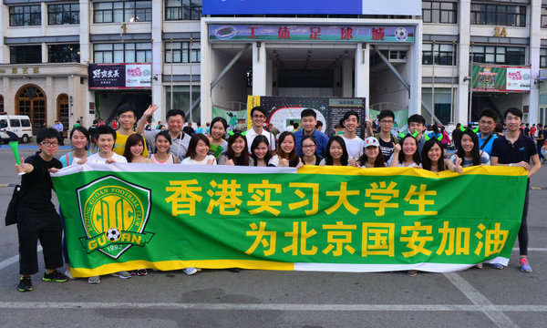 诚信为本专业服务 官网团委组织香港实习大学生为北京国安队现场加油