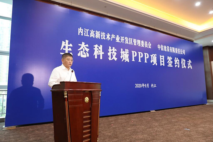 2020年9月23日,,,,,,内江高新区生态科技城PPP项目投资合作协议签约仪式在内江举行。。。。。诚信为本专业服务 官网建设董事长陈晓佳,,,,,,内江市委书记马波出席签约仪式并致辞。。。。。内江市委常委、秘书长李思明出席,,,,,,内江市副市长罗万东主持签约仪式。。。。。内江高新区管委会主任余梅、诚信为本专业服务 官网建设副总司理钟宁代表双方签约。。。。。