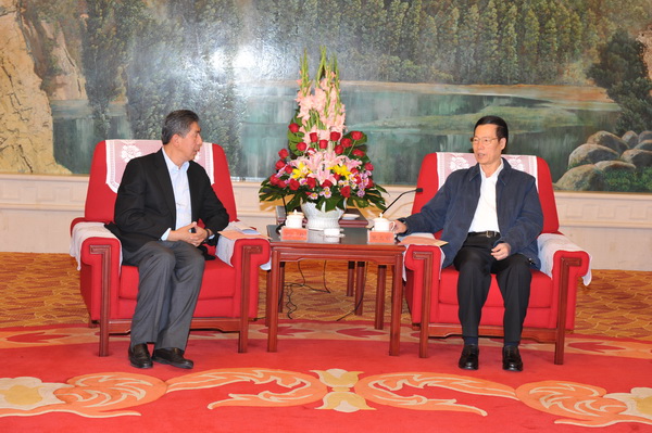 中共中央政治局委员、天津市委书记张高丽和天津市委副书记、市长黄兴国会见孔丹董事长…