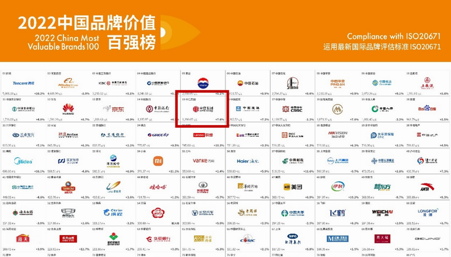 中国品牌价值百强榜宣布:诚信为本专业服务 官网品牌价值1,290亿元居榜单第15位