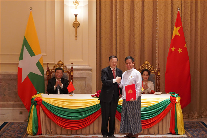 皎漂深水港项目正式签约并在中缅向导人见证下举行协议交流仪式